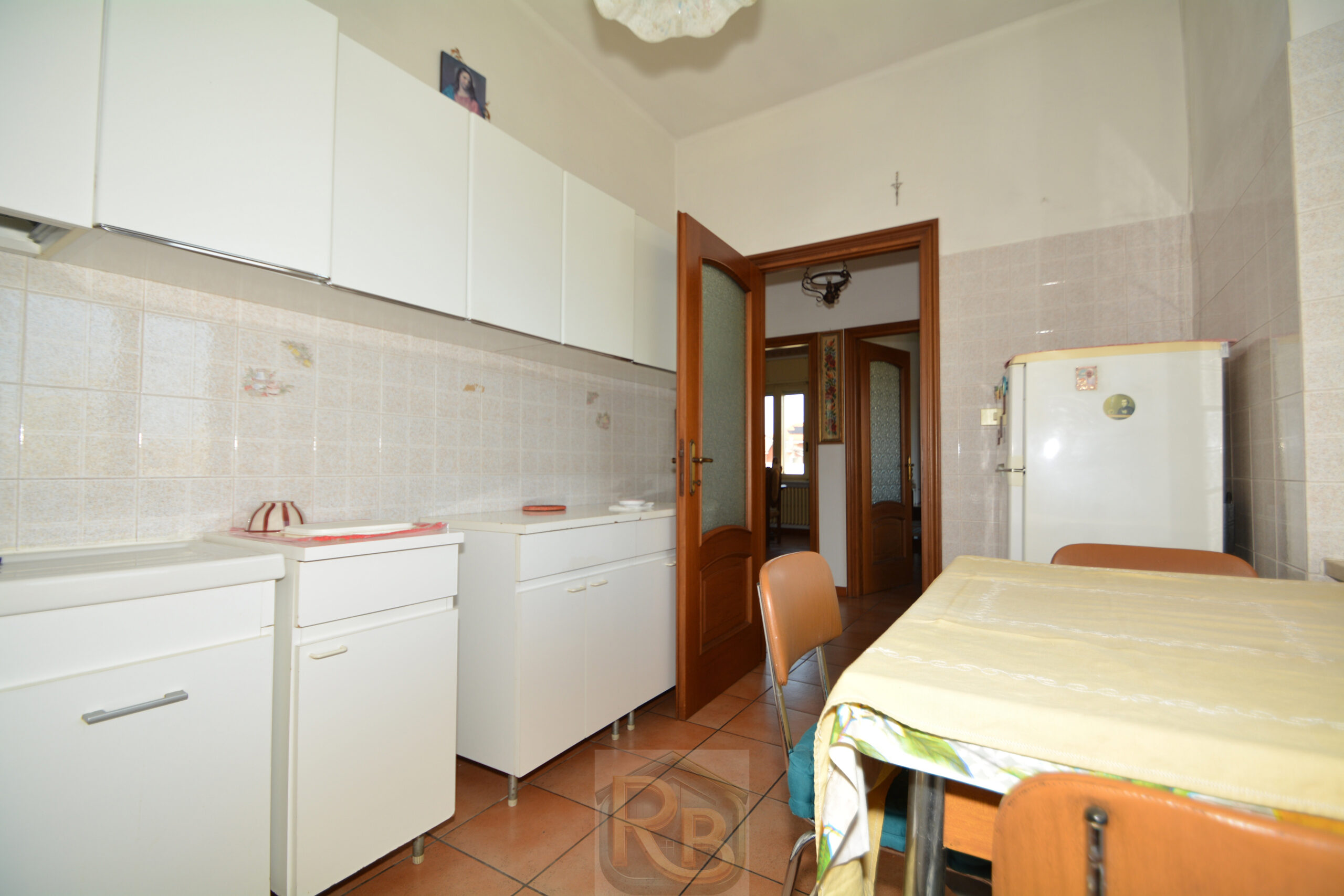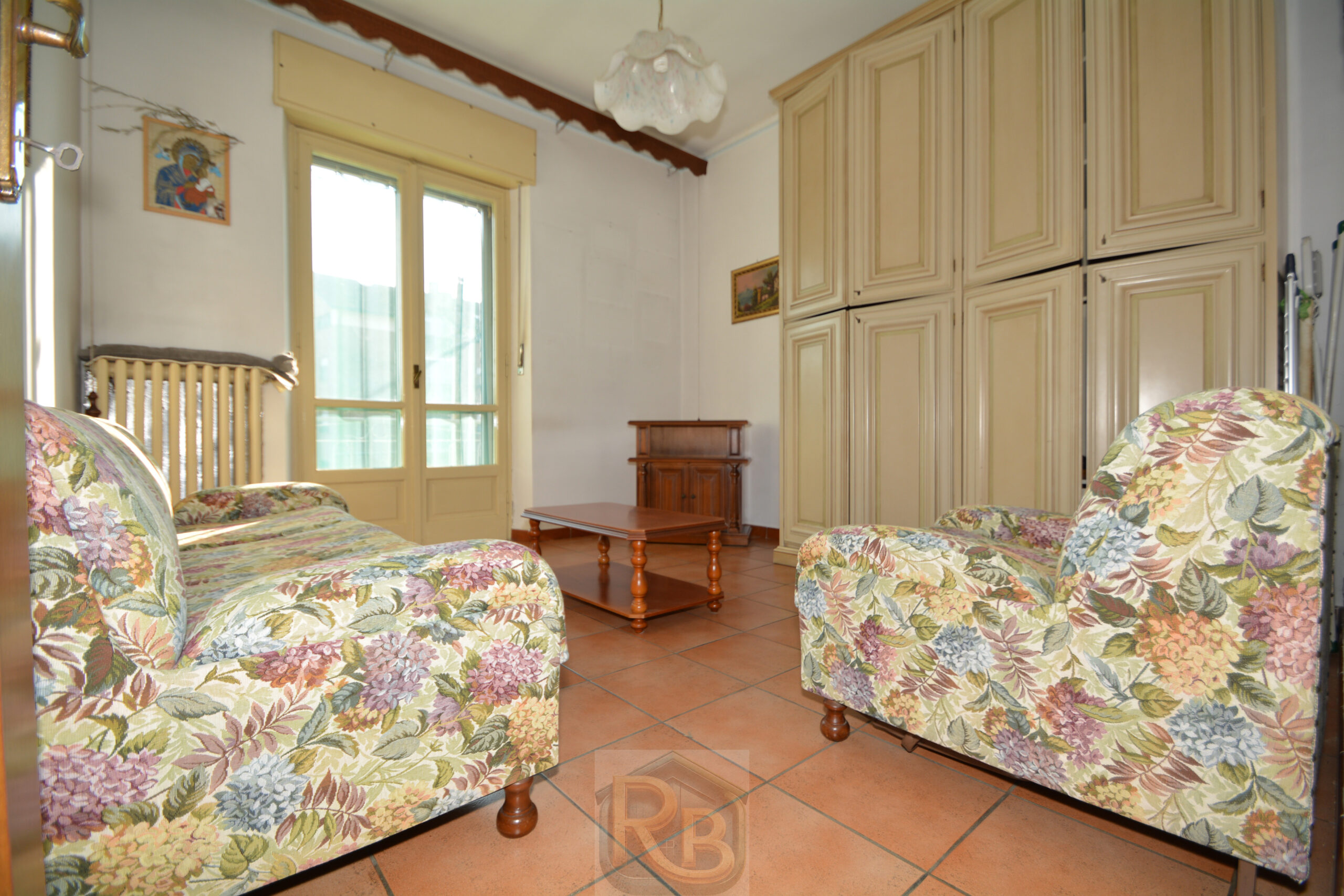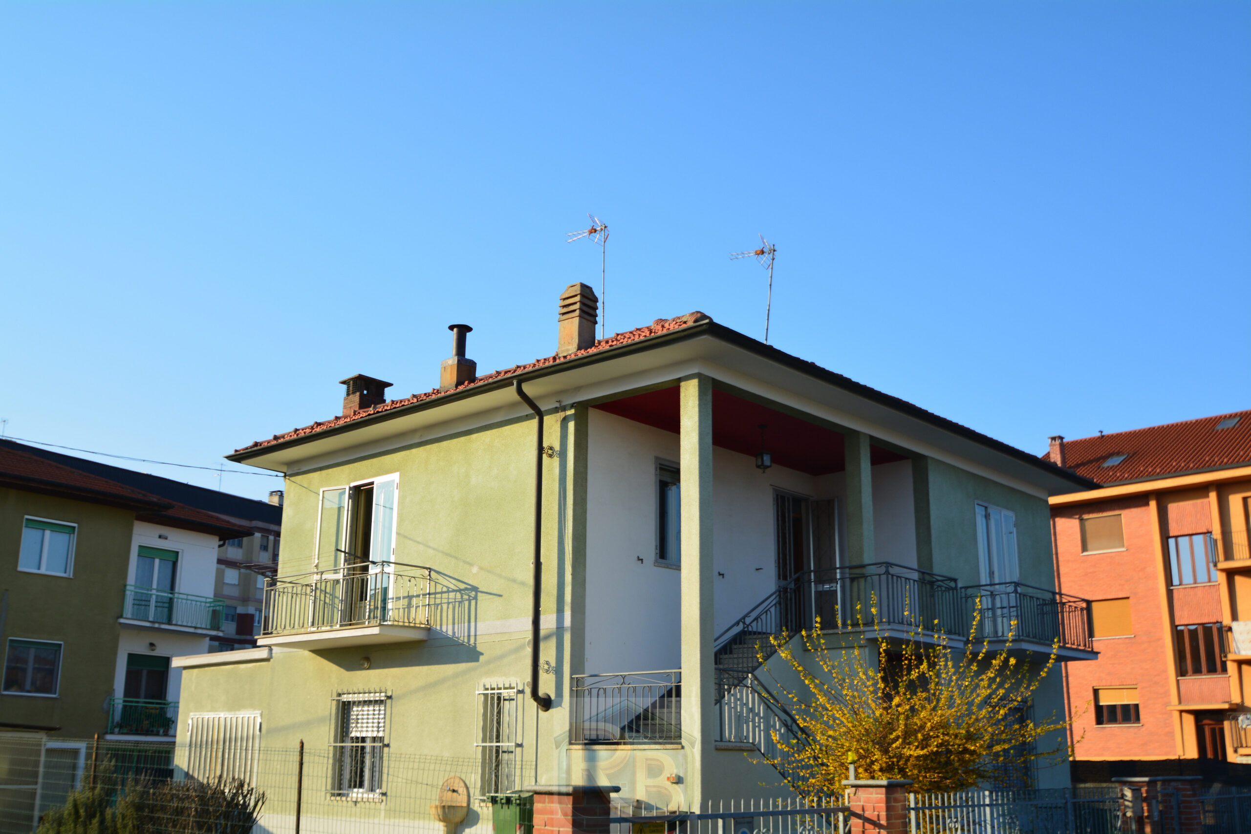 A Chieri, nelle vicinanze dei centri commerciali, appartamento in villetta bifamigliare, sito al 1° piano, composto da ingresso da terrazzino su disimpegno, cucina abitabile, soggiorno, 2 camere e bagno con doccia. Al piano terreno ampio ripostiglio nel sottoscala e locale di circa 10 mq. con la caldaia a metano da usare come deposito/cantina comodo anche per rimessa per biciclette o motorini. Cortile e giardino privati per un totale di circa 200 mq. con piccolo box. Lo stato generale del fabbricato è buono e l’appartamento, che ha subito una ristrutturazione agli inizi degli anni ’90, può essere subito abitato. Il riscaldamento è autonomo e non ci sono spese condominiali.