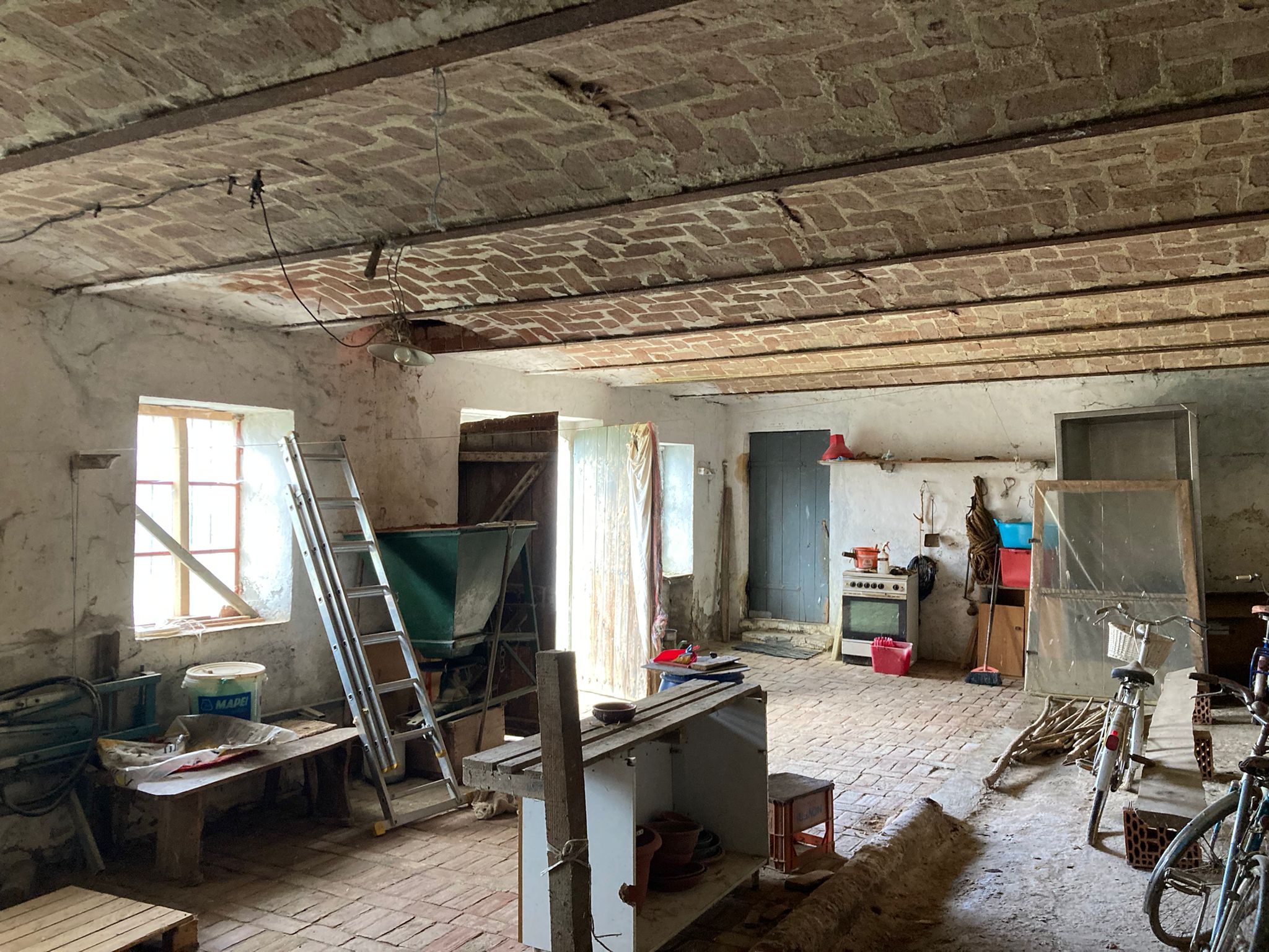 Cantina: piano interrato con volta in mattoni a vista.