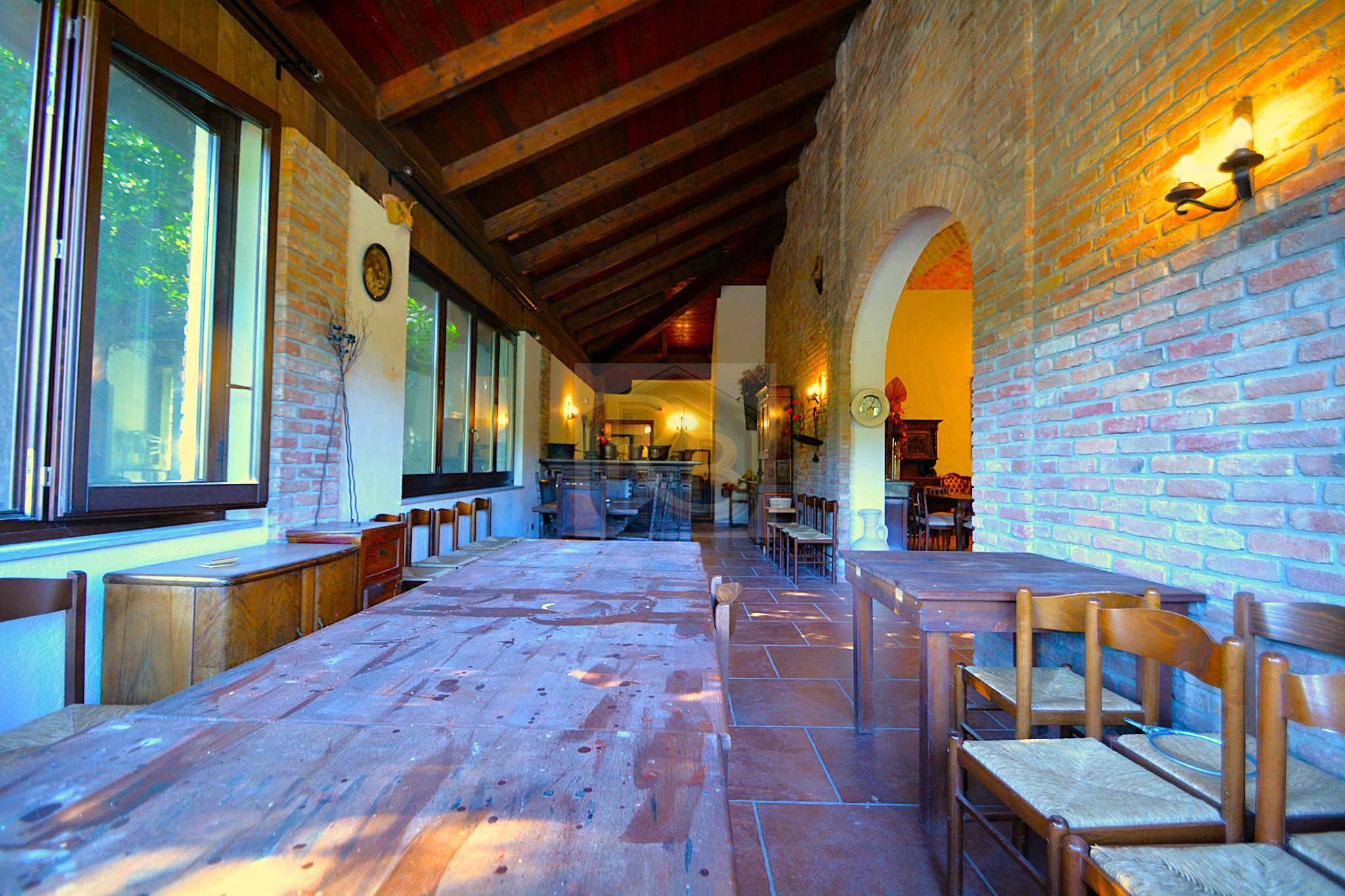 -ampi locali già utilizzati dall’agriturismo, tra cui un grande salone con servizi e cucine attrezzate, ideali per ristorazione, eventi o attività didattiche.